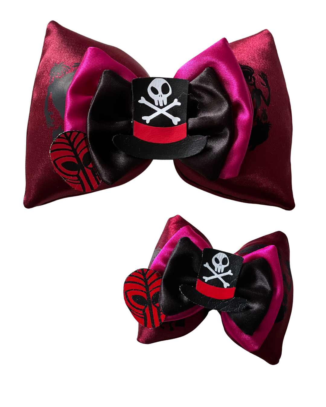 Le noeud dans sa version miniz’ mesure environ 10 x 7cm. Il est parfait pour mettre une touche de magie à vos coiffures du quotidien, et a la taille parfaite pour orner celles de vos bambins.