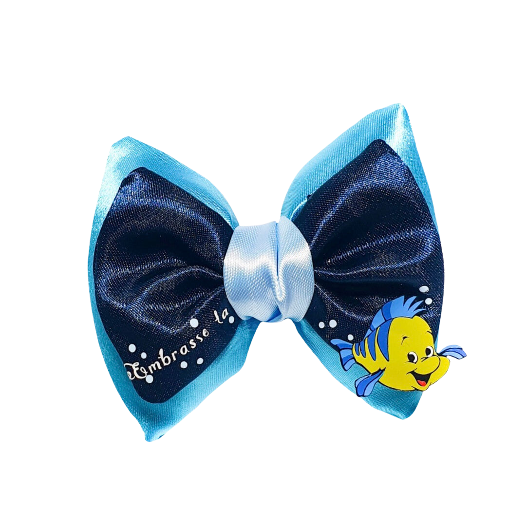 Le noeud dans sa version miniz’ mesure environ 10 x 7cm. Il est parfait pour mettre une touche de magie à vos coiffures du quotidien, et a la taille parfaite pour orner celles de vos bambins.