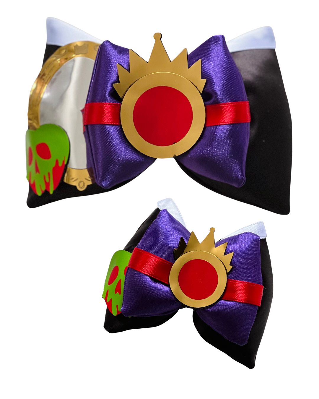 Le grand noeud mesure environ 15 x 10cm. Il peut être porté directement dans les cheveux ou peut être clipsé sur les serres tête, bonnets et casquettes de la collection « swap your bow » vendus à Disneyland Paris.