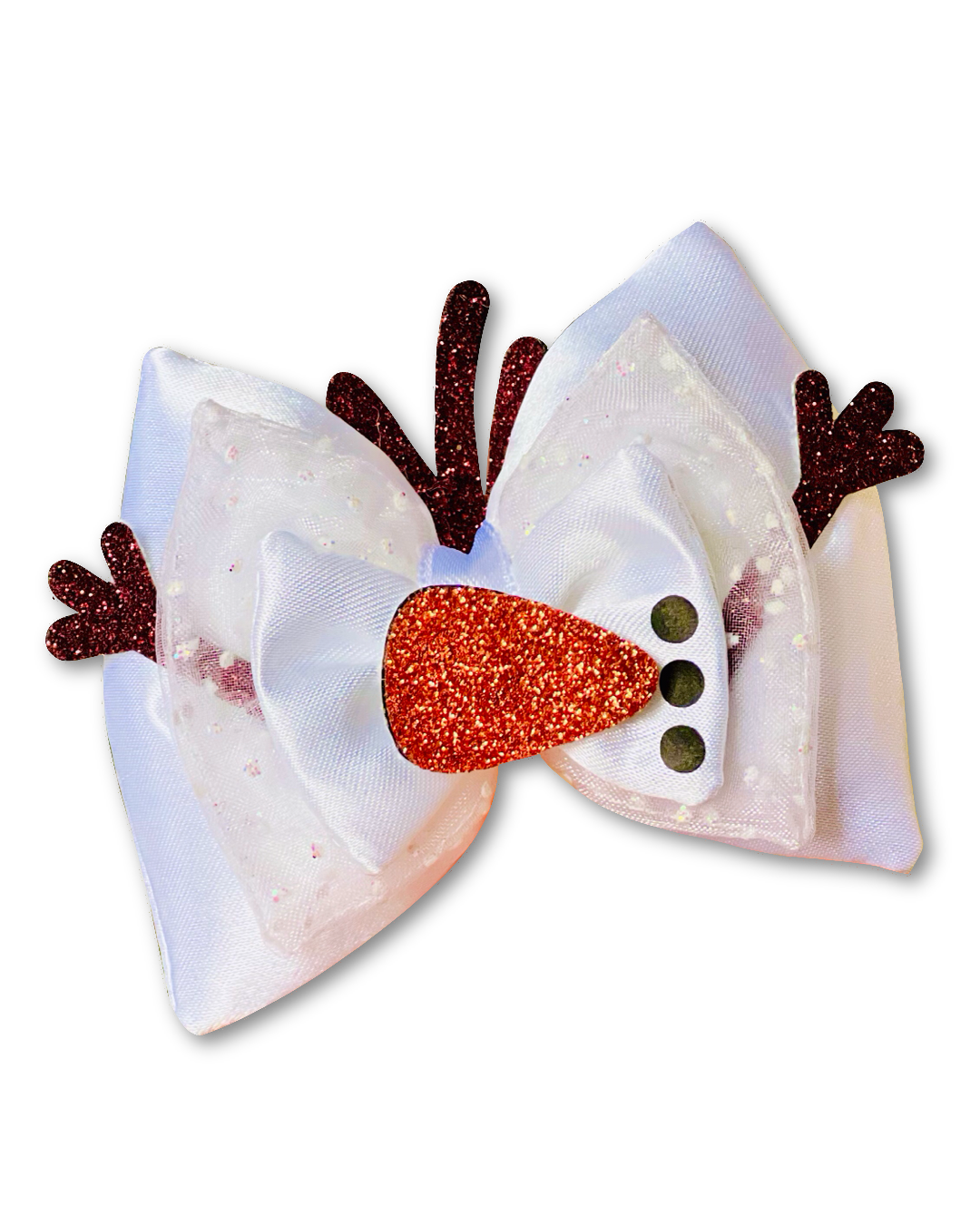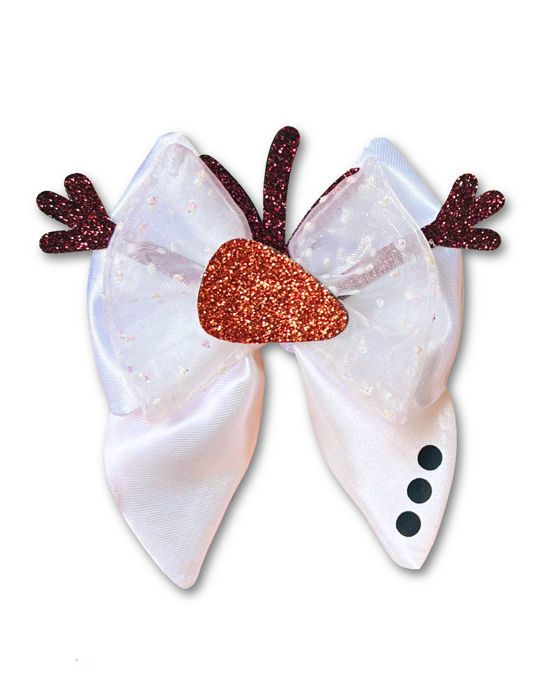 Le grand noeud mesure environ 15 x 10cm. Il peut être porté directement dans les cheveux ou peut être clipsé sur les serres tête, bonnets et casquettes de la collection « swap your bow » vendus à Disneyland Paris.